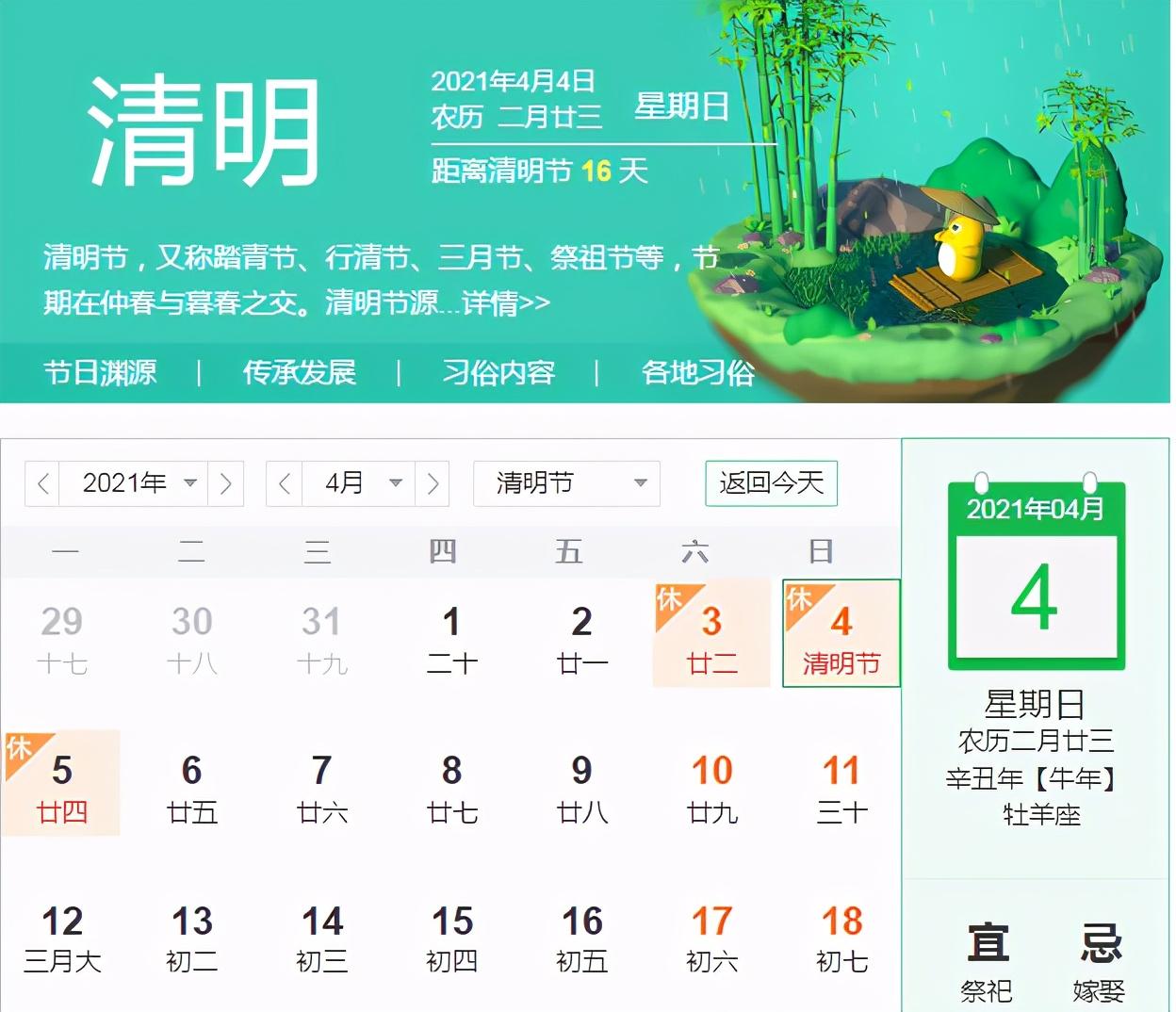 3 、2021年4月3日(周六)—4月5日(周一)放假 ,共3天 。