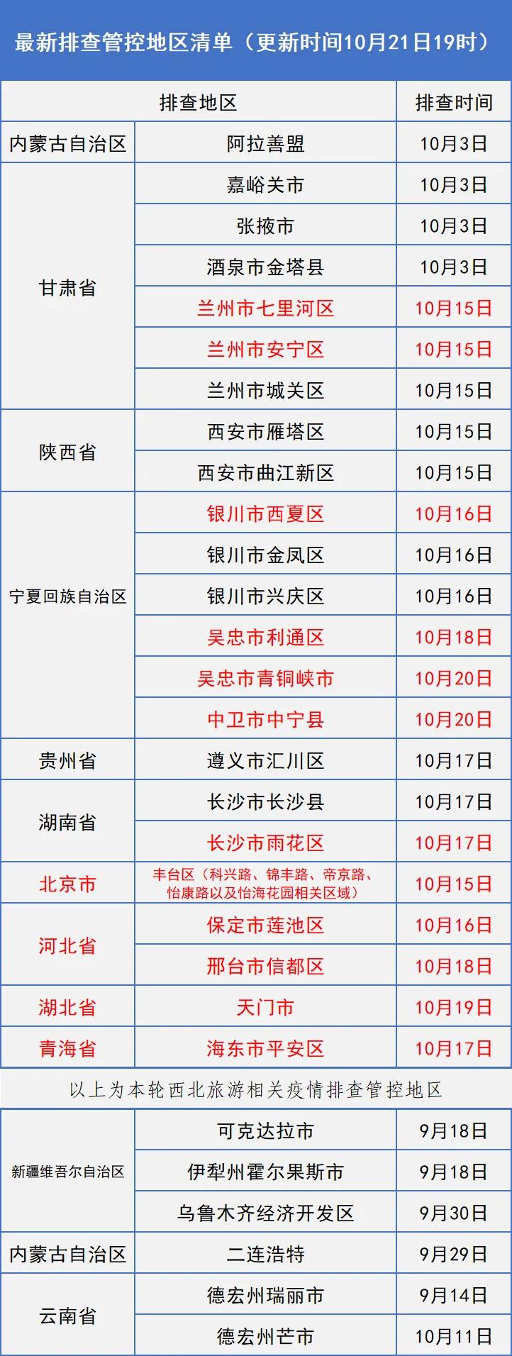 - 中高风险区调整:10月21日新增高风险区4个(碑林区、雁塔区、高新区),中风险区5个。调整后全市共有高风险区68个 、中风险区76个,蓝田县等郊区出现新增风险区域,显示疫情存在进一步扩散风险。
