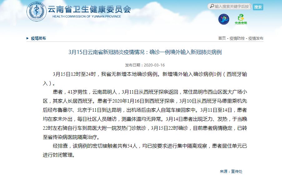 自云南省的12号通告发布以来,昆明市严格落实各项防控措施,第一时间成立了由卫健委、公安局 、文旅局、交运及外办等部门组成的工作专班 ,紧扣关键环节制定工作方案,与海关、机场 、出入境管理等部门形成联防联控机制,组织全市各级各部门群防群治 ,及时开展了大量防范境外疫情输入的处置工作 。截至3月19日24时,共隔离医学观察1274人。其中,回国中国公民1141人,外籍人员133人 ,有效地遏制了疫情的输入和扩散。
