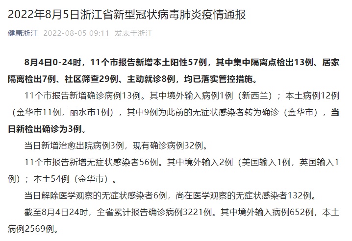 8月17日宁波疫情最新消息:昨日新增本土确诊4例,8月16日0-24时,11个市报告新增本土阳性36例 ,其中集中隔离点检出34例、居家隔离检出1例、社区筛查1例,均已落实管控措施。