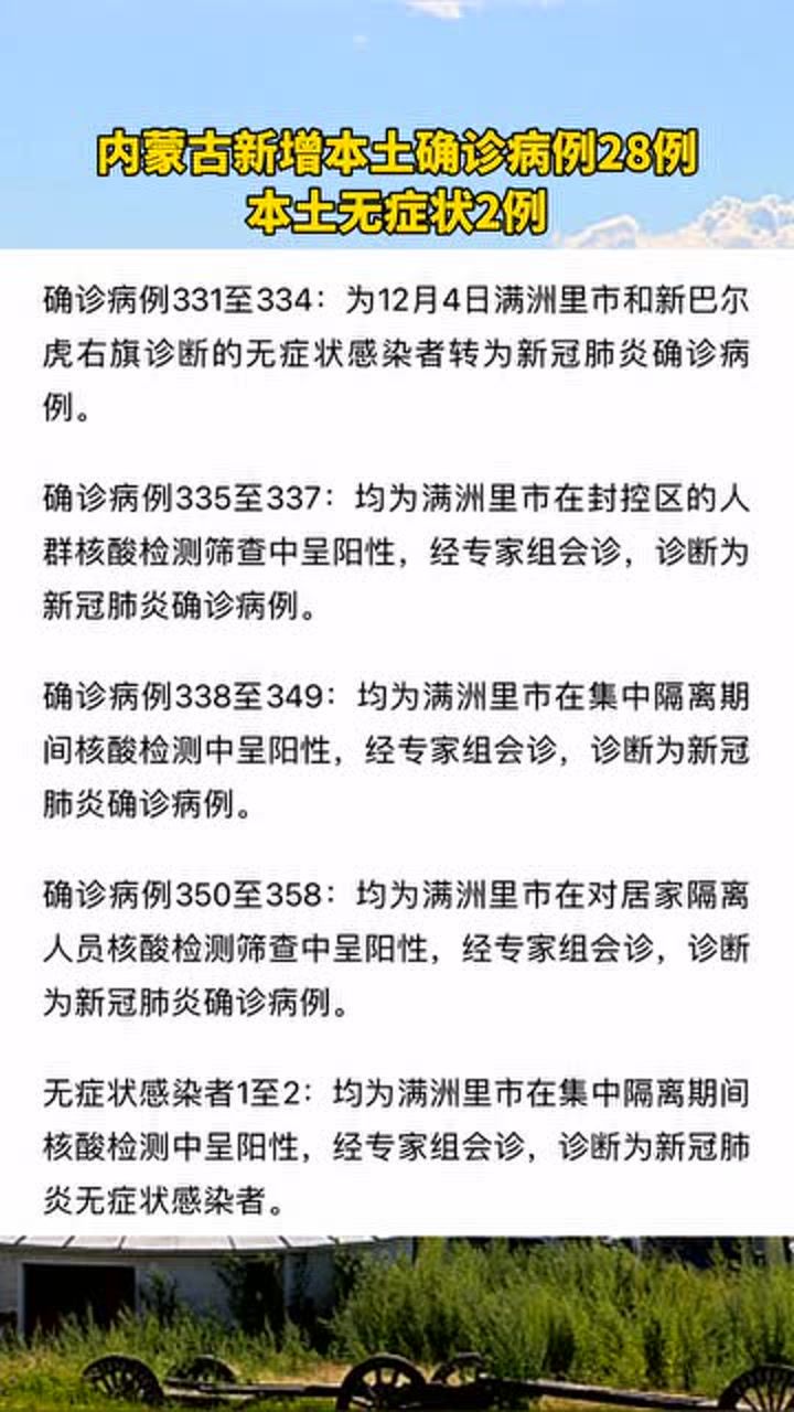 11月26日下午,内蒙古自治区新冠肺炎疫情防控指挥部通报满洲里市疫情最新情况如下: