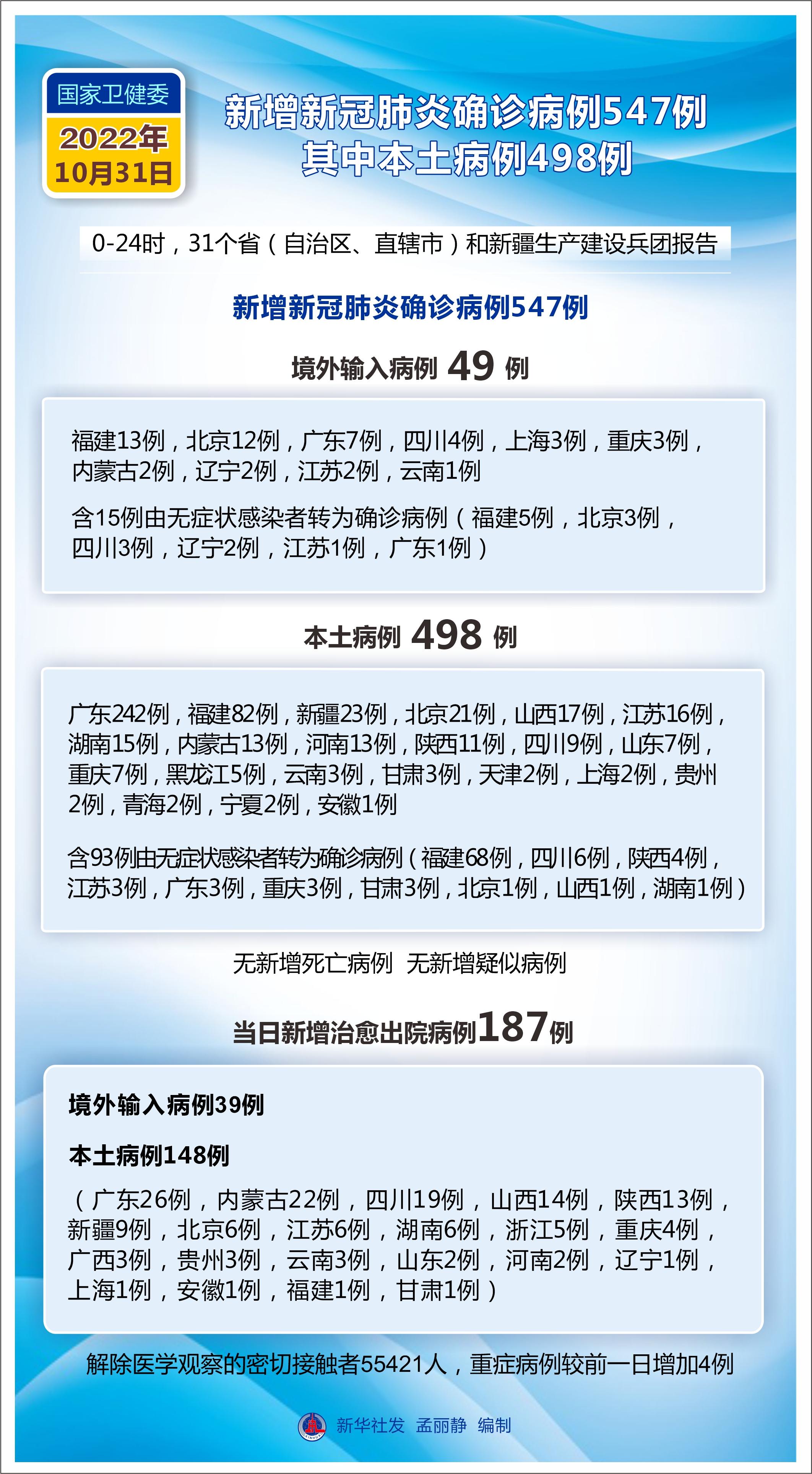 - 新增确诊病例:全国31个省(自治区、直辖市)和新疆生产建设兵团报告新增确诊病例12例 ,均为境外输入病例,具体分布为:广东3例,内蒙古2例 ,上海2例,云南2例,陕西2例 ,福建1例。无新增本土确诊病例 。