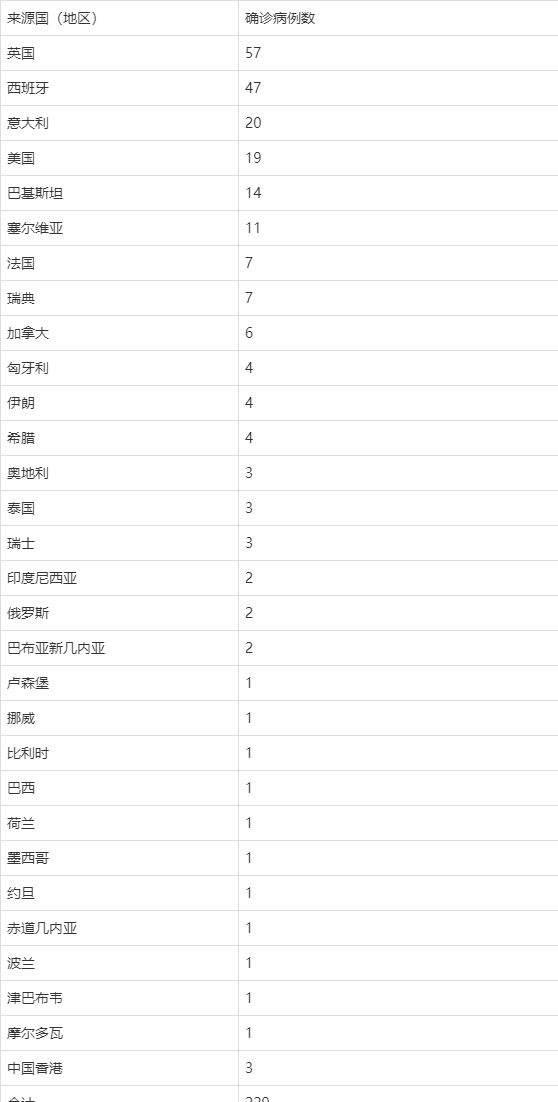 3月21日12时至24时,新增报告境外输入确诊病例8例 ,来源国分别为:西班牙4例、英国2例 、法国1例、奥地利1例 。