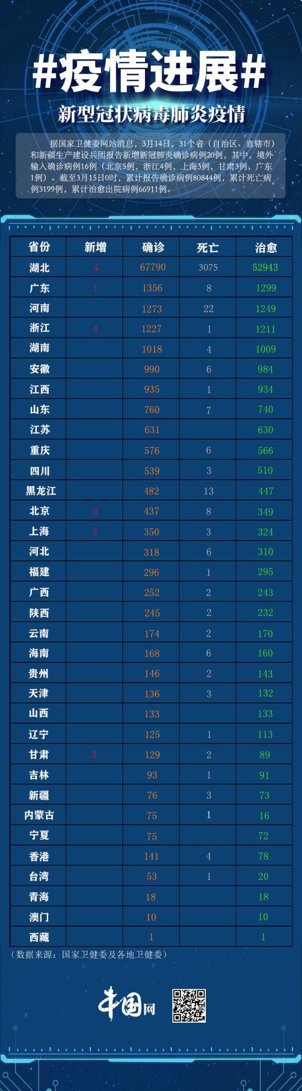 累计报告境外输入确诊病例5549例,累计治愈出院病例5303例,无死亡病例。