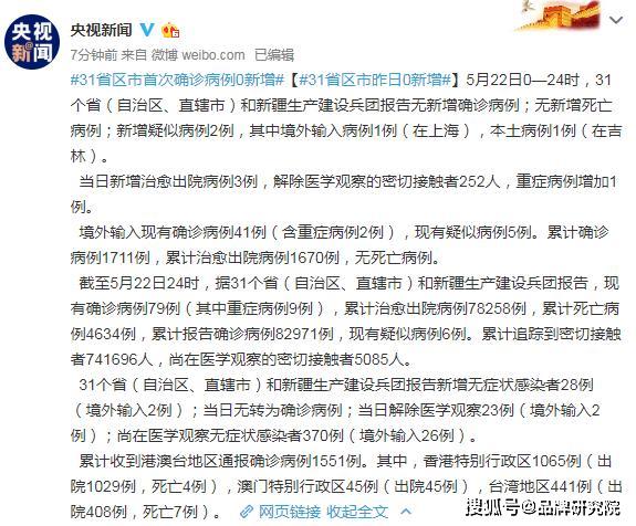 - 无症状感染者情况新增无症状感染者22例(均为境外输入),无转为确诊病例,解除医学观察17例(境外输入14例)。尚在医学观察的无症状感染者494例(境外输入368例) 。
