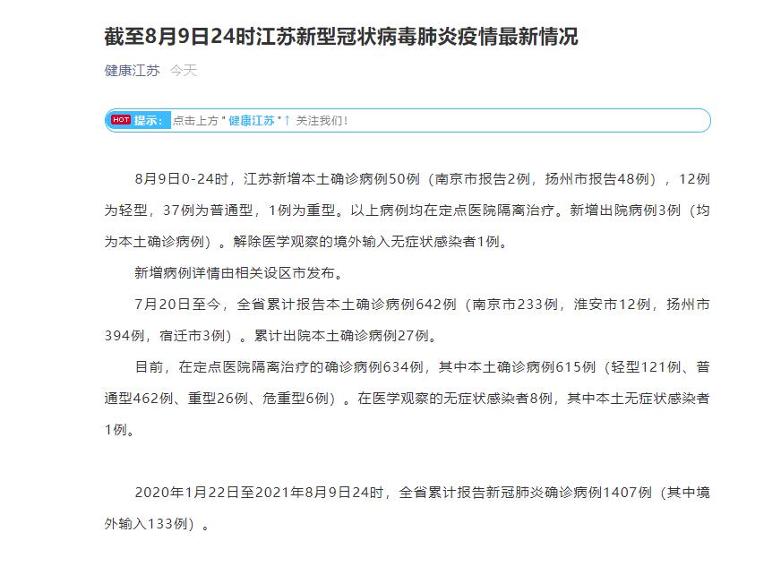 新增本土无症状感染者2例,均为扬州市报告。