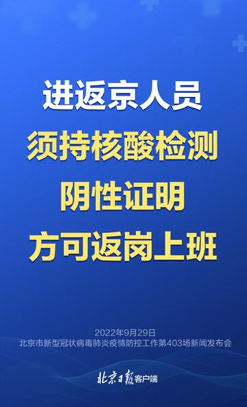 进京要求:进返京人员需持48小时内核酸检测阴性证明、“北京健康宝 ”绿码,方可进京 。