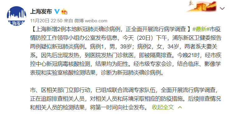 当前状态:已转运至上海市公共卫生临床中心隔离治疗 ,病情稳定 。