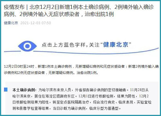 三、12月19日北京疫情最新消息 新增1例本土确诊病例