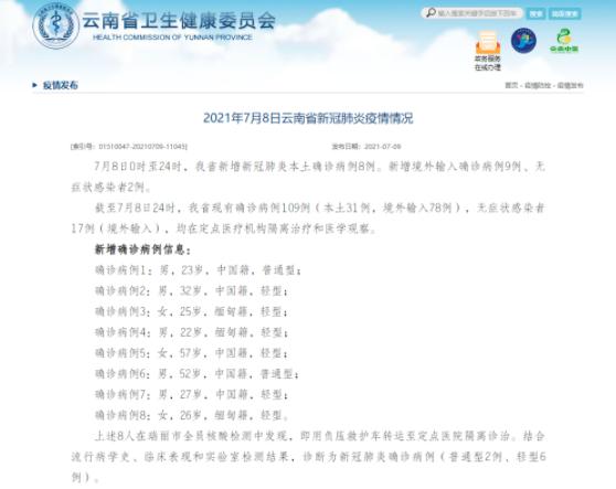 4月7日0—24时 ,全国新增本土确诊病例11例,均在云南。 以下是具体情况: