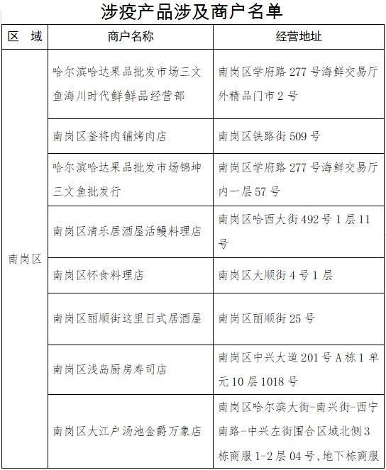 在中风险地区利民开发区裕强街道中 ,新增江庭华府三期高十三栋1单元为管控单元;在中风险地区呼兰区公园路街道中,新增东方红1号楼5单元为管控单元;在中风险地区呼兰区呼兰街道中,新增金街2号楼1单元 、金街土地新楼1栋1单元、胜利街名师楼北胡同为管控单元。