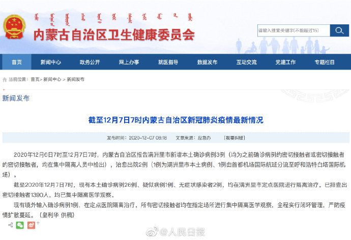 - 内蒙古自治区:新增1例本土确诊病例 ,在锡林郭勒盟。