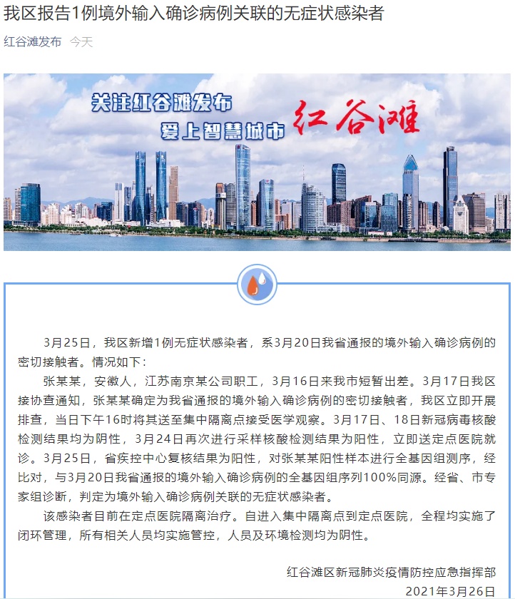 - 新增本土无症状感染者:新增7例,其中南昌市6例(包括在封控区 、管控区等重点区域筛查中发现3例,在隔离观察的密接人员中发现3例)、上饶市1例(省外输入)。