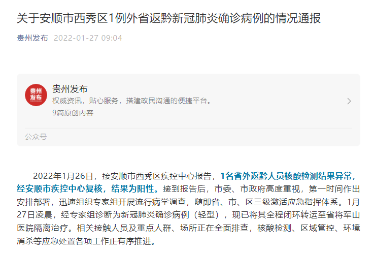 贵州新增本土确诊病例1例,这名确诊者的病情还不是很严重 ,病情还在可控制范围内。