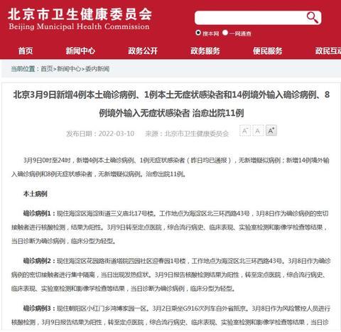 北京10月19日新增本土“14+4”,均为隔离观察人员,无社会面新增病例 。具体信息如下:
